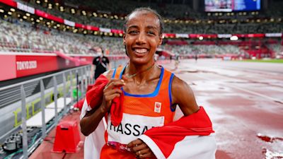Olympics 2021 Dutch track star Sifan Hassans quest for an improbable treble. Dutch runner Sifan Hassan took a first giant step in her bid for an unprecedented Olympic treble when she sprinted to gold in the 5000m Monday but admitted she had been so scared. The 5000 was her first chance.