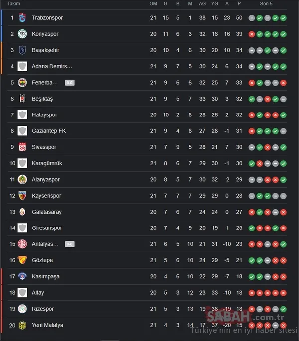 Iste Super Lig De Guncel Puan Durumu 2021 22 Sezonu 21 Hafta Sayfa 1 Diger 18 Ocak 2022 Sali